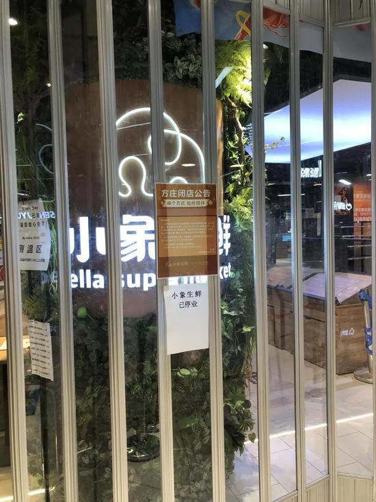 9月7日,美团旗下小象生鲜在小程序发布方庄闭店公告,称方庄店将于9月9日起停止运营。9月17日,深燃财经在现场看到,小象生鲜方庄店大门紧锁,店内货架已被清空,隔离墙上显示“小象生鲜已停业”。小象生鲜App当定位在方庄店时,显示所有商品都在“补货中”。