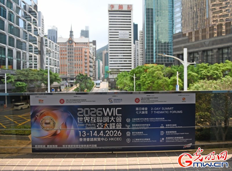 4月12日,香港街头的2026年世界互联网大会亚太峰会标识。