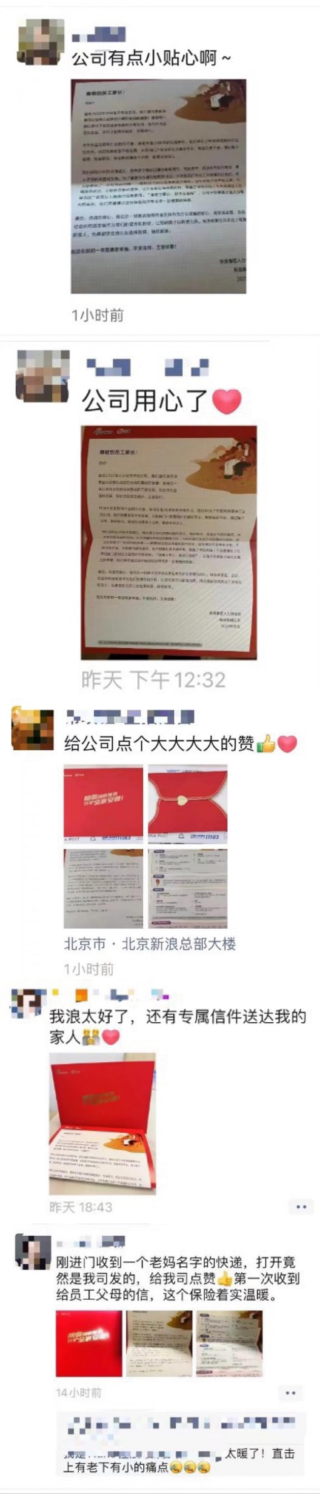近期,有不少新浪员工们纷纷地在朋友圈中晒出一张图片,同学们不约而同地配文直呼感到“贴心、用心、暖心”。